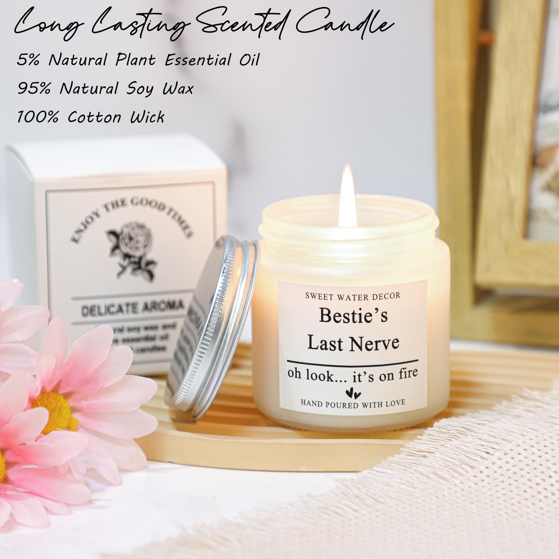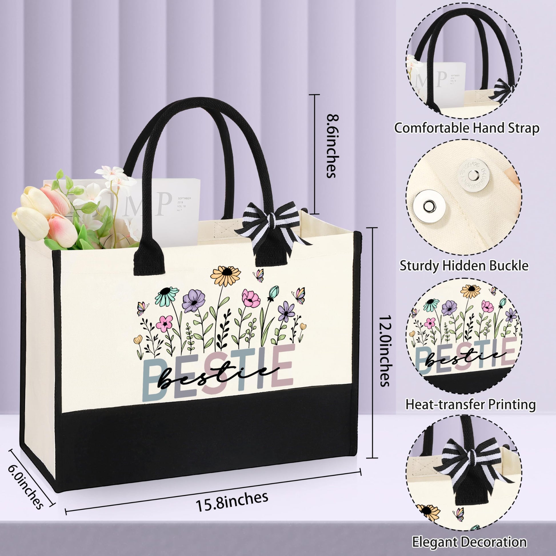 - ✨【Item Details】Our glass can is easy to clean and won't change the taste of your various drinks. The makeup bag is made of high quality canvas, show her charm, and the bracelets is beautifully made and of good quality. Lavender-scented candles can soothe the body and mind and relieve stress. The tote bag can hold your daily necessities, to meet your daily use needs, above the exquisite pattern, fashion atmosphere. On the outside of our card is the design of the words in our bestie ear cover design. It's blank inside, write what you want.