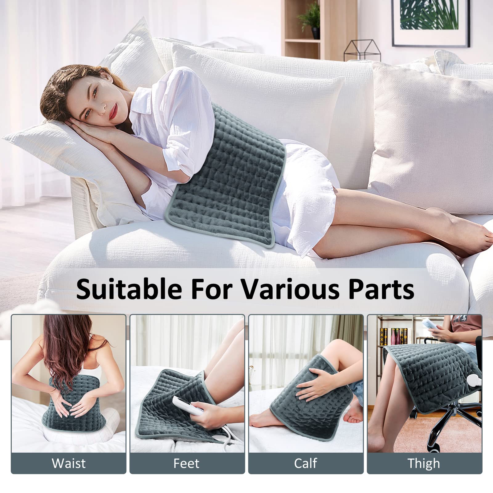Electric Heating pad for Back/Shoulder/Neck/Knee/Leg Pain Relief, 6 Fast Heating Settings, Auto-Off, Machine Washable, Moist Dry Heat Options, Extra Large 12"x24"(Gray)